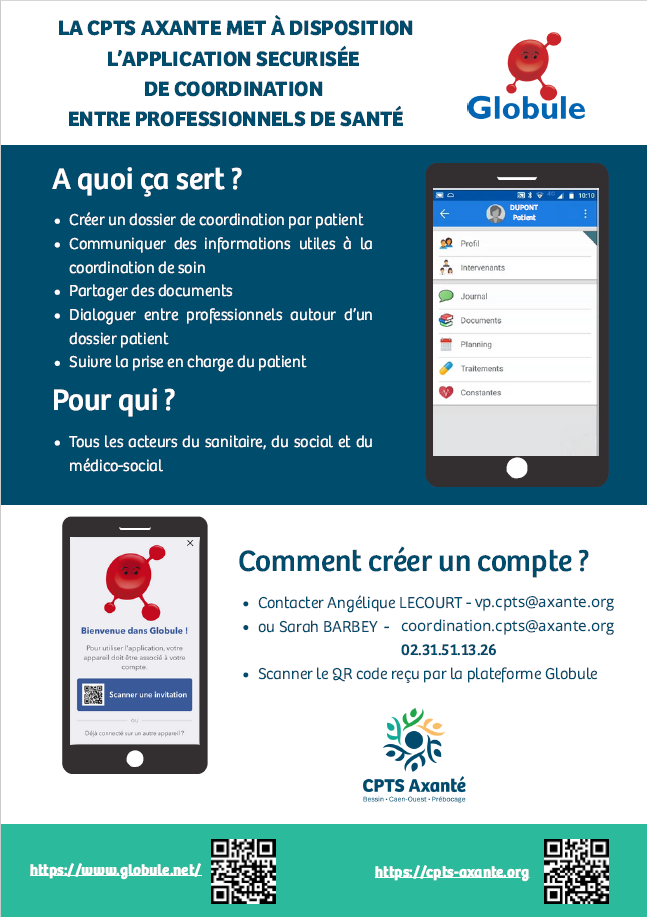 Afin de renforcer la coordination des professionnels de santé autour des patients et de fluidifier les parcours de soins, la CPTS Axanté propose à ses adhérents l’utilisation gratuite de l’application Globule.